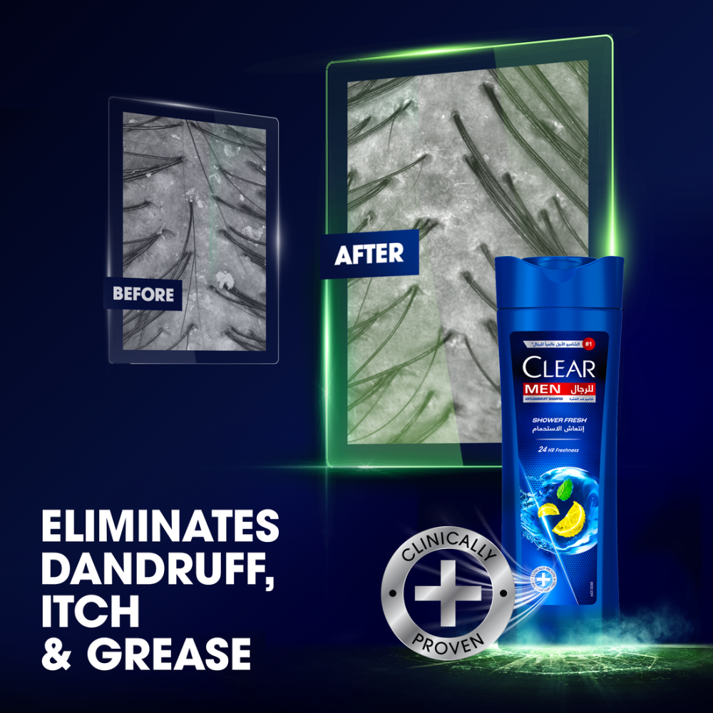 لا توجد حدود لدفعك جسدك وعقلك. أنت تسعى جاهدًا لتحطيم الحواجز الجسدية والعقلية سواء في قاعات الاجتماعات أو في الحياة. كلما دفعت نفسك بقوة أكبر، زاد الأدرينالين الذي يغذي طاقتك. ومع ذلك، يمكن أن يتسبب الأدرينالين والمواد الكيميائية الأخرى التي يتم إطلاقها في جفاف وحكة فروة الرأس، مما يؤدي إلى ظهور القشرة. نقدم لكم شامبو كلير للرجال الجديد ضد القشرة "شاور فريش" (انتعاش الاستحمام)، بمظهر وتعبئة جديدين ومنعشين. صُمم هذا الشامبو ليمنحك شعرًا خاليًا 100% من القشرة^ وفروة رأس مغذاة، باستخدام تركيبة مثبتة سريريًا ضد القشرة، غنية بفيتامين B3، خلاصة الليمون والنعناع. استمتع بانتعاش يدوم 24 ساعة مع هذا المزيج المنعش الذي ينظف الشعر وفروة الرأس بعمق 10 مرات**، ليمنحك شعورًا بالانتعاش وكأنك خرجت للتو من الاستحمام طوال اليوم. وبصفته الشامبو رقم 1 للرجال في العالم*، تم تصميم شامبو كلير المضاد للقشرة خصيصًا لتلبية احتياجات فروة رأس الرجال، والتي تكون أكثر عرضة للقشرة والحساسية. استمتع بـفروة رأس نظيفة ومنتعشة بثقة، حيث يوافق 100% من الرجال على أن شامبو كلير للرجال يجعل فروة رأسهم نظيفة ومنتعشة+. استكشف المجموعة الكاملة من منتجات كلير للعناية بالشعر للعثور على الحل الأمثل لاحتياجات شعرك وفروة رأسك. سواء كنت تبحث عن حماية من القشرة، تنظيف عميق، أو صحة عامة لفروة الرأس، فإن كلير لديها المنتج المصمم خصيصًا لمتطلباتك. حافظ على فروة رأسك وشعرك في أفضل حالة مع شامبو كلير للرجال شاور فريش المضاد للقشرة. طريقة الاستخدام: يوضع على شعر مبلل. يشطف جيدًا. يكرر إذا رغبت في ذلك. لأفضل النتائج، استخدمه يوميًا. تجنب ملامسة العينين. في حالة ملامسة العينين، اشطفهما فورًا.