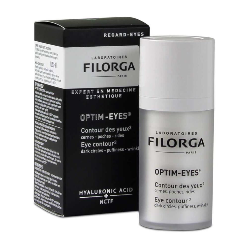 - Filorga OPTIM-EYES Eye Contour 15ml هو عناية ثلاثية المفعول لمحيط العين لتقليل الهالات السوداء والانتفاخات والتجاعيد بحركة واحدة: