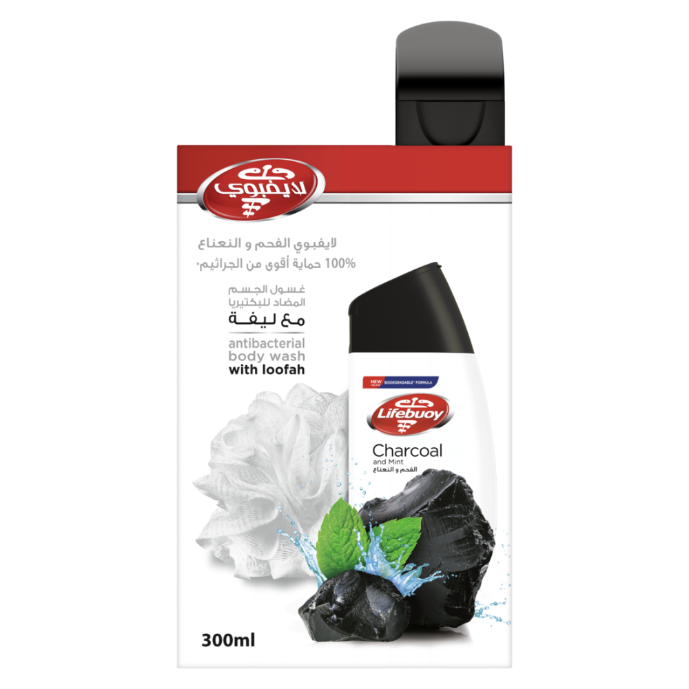 لايفبوي سائل استحمام بالفحم و النعناع 300مل + ليفه